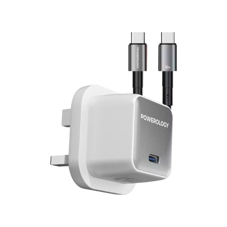 Powerology QX 45W Pocket-Sized GAN Adapter USB-C To USB-C Cable 1M
