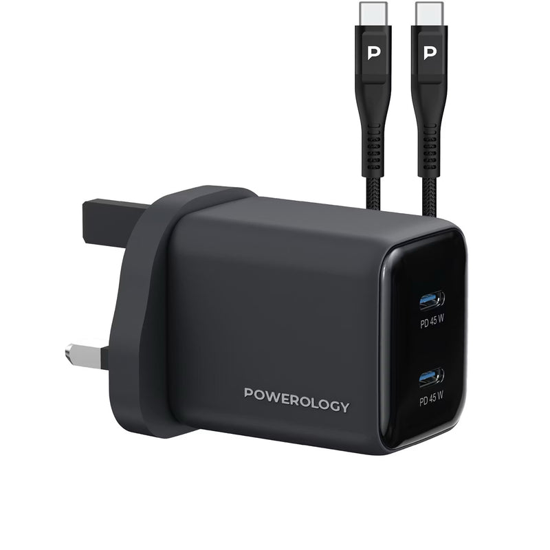 Powerology Volt-X 45W Dual-Port GaN Wall Charger-Black